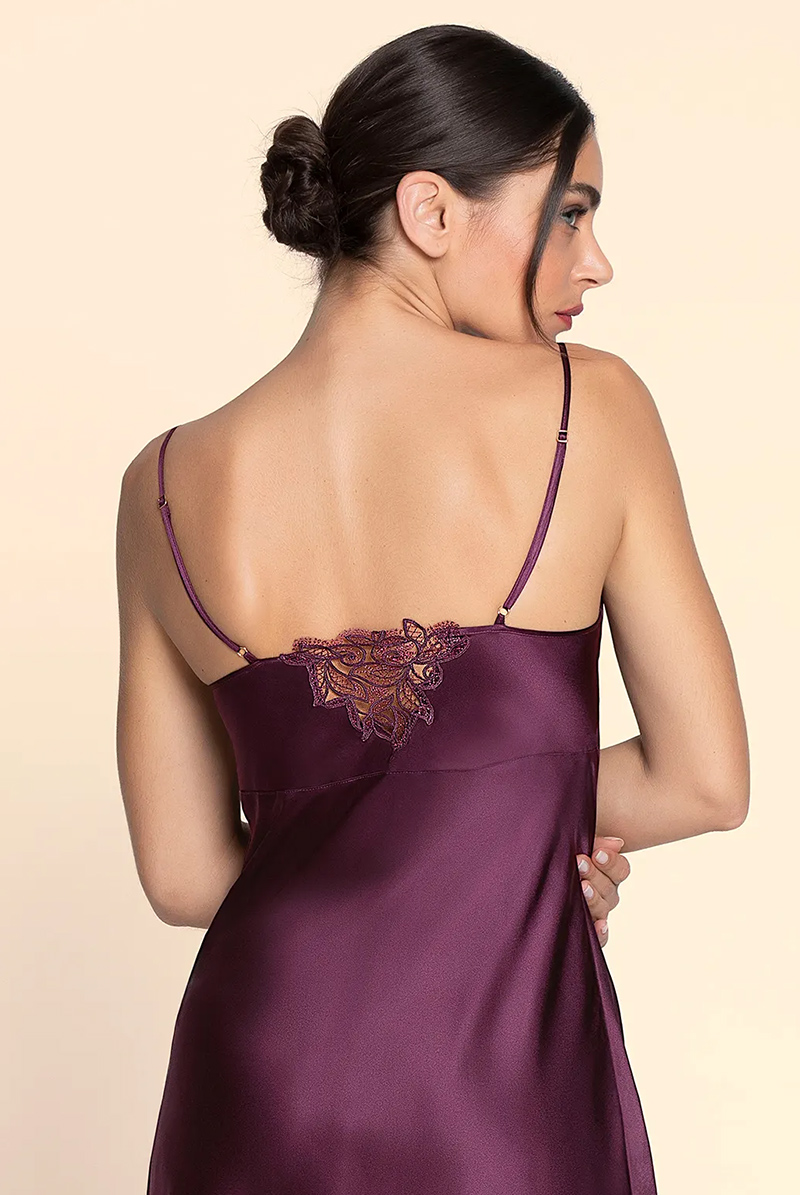 深みのあるプラムとブラックカラントの繊細な色彩で彩られた「Elegance Artist」は、秋の静けさと豊かさを映し出すラグジュアリーなコレクション。透明感のあるチュールに施されたのは、2種の糸を用いたイタリア製のマルチスレッド刺繍。立体的に浮かび上がるリーフモチーフは、光を優しく反射する糸とマットなコード刺繍とのコントラストにより、奥行きと洗練を兼ね備えた美を演出します。しなやかで光沢のあるイタリア製シルクサテンが、肌に溶け込むような着心地と格別な贅沢をもたらし、纏うたびに気品を纏わせてくれる一着。
