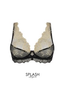 ブラックの気高さに、ゴールドの輝きが気品を添える「Sublime en Or」。繊細なCalais Leaversレースとイタリア製刺繍が織りなす、洗練のコンポジションが目を惹きます。軽やかなレースに描かれた花の輪郭が肌にふんわりと浮かび上がり、アーチやトレリスをモチーフにした様式的な刺繍が、椿の優雅な美しさを際立たせます。ラミネート加工によるゴールド刺繍がチュールの上で輝きを放ち、夜の装いに格別な華やぎを添えます。