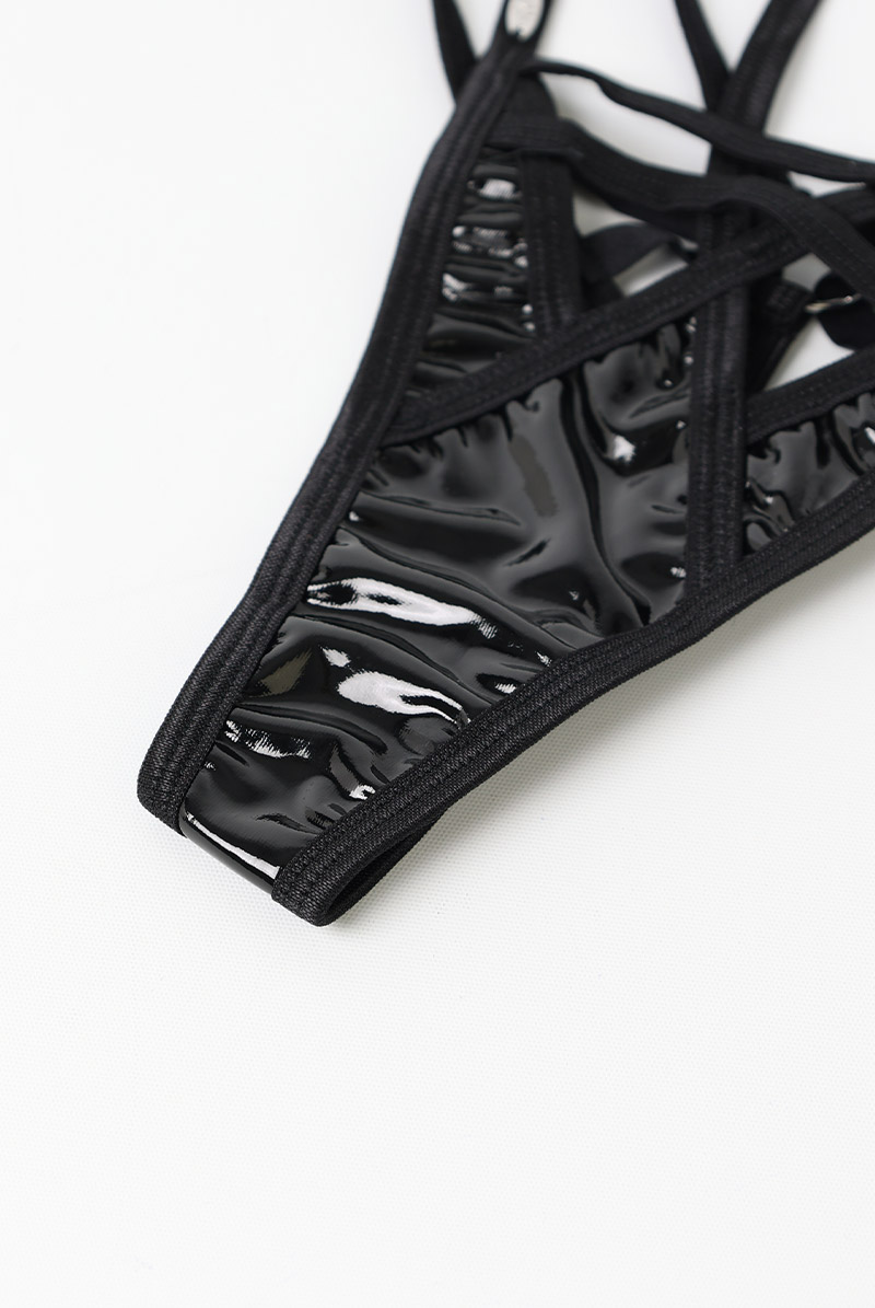 Keira Lise thong |タンガ(ボンテージ・フェイクレザー・ダブルストラップ・ブラック) | Obsessive 高級Sexyランジェリー【即日発送・サイズ交換NG・メール便対象】輸入下着・ランジェリー <OB5505>