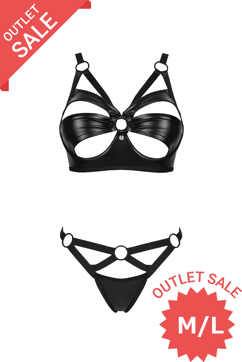 【30%OFF】アウトレットSALE|M/L |Armares 2 pcs set | ワイヤー入りブラ&タンガ 2点セット(レザー・ボンデージ・ブラック)| Obsessive 高級Sexyランジェリー【即日発送・サイズ交換NG・クーポン適用対象外・メール便対象】輸入下着・ランジェリー <OB4530>