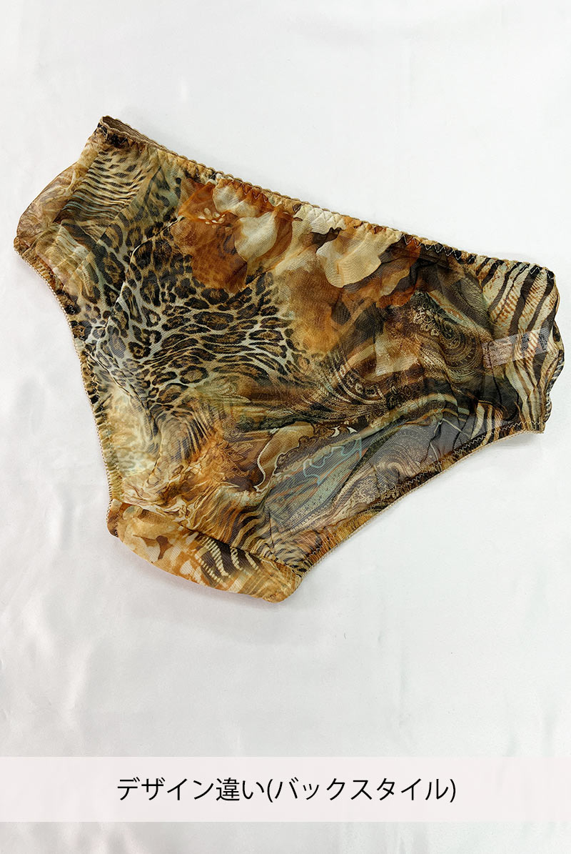 レオパードやゼブラ、フラワーなどインパクトのある柄を大胆に重ねたショーツ。脚繰りには艶やかな刺繍を配しさらにエレガントに。大人の女性がスタイリッシュに着こなせる知性を秘めたアニマル柄は必見。野生の官能をさらりと纏うリュクスなランジェリーをお楽しみください。 バックも全面にプリントを乗せたデコラティブなスタイル。光沢感のある刺繍がヒップを華やかに縁取ります。センターで切り替えたショーツはフィット感も抜群。セクシーなルックスに加えて滑らかな肌触りや軽いフィッティングもぜひご堪能ください。