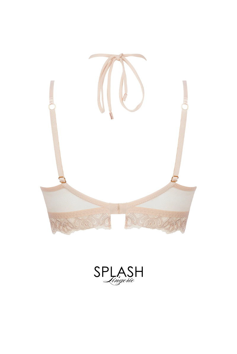 芸術作品のような繊細な美しさを纏う、エレガントなランジェリーコレクション。 ヌードとパールの2色の糸で表現されたイタリア製マルチスレッド刺しゅうが、肌の上でやわらかな陰影を生み出し、立体感のある華やかな表情を描きます。