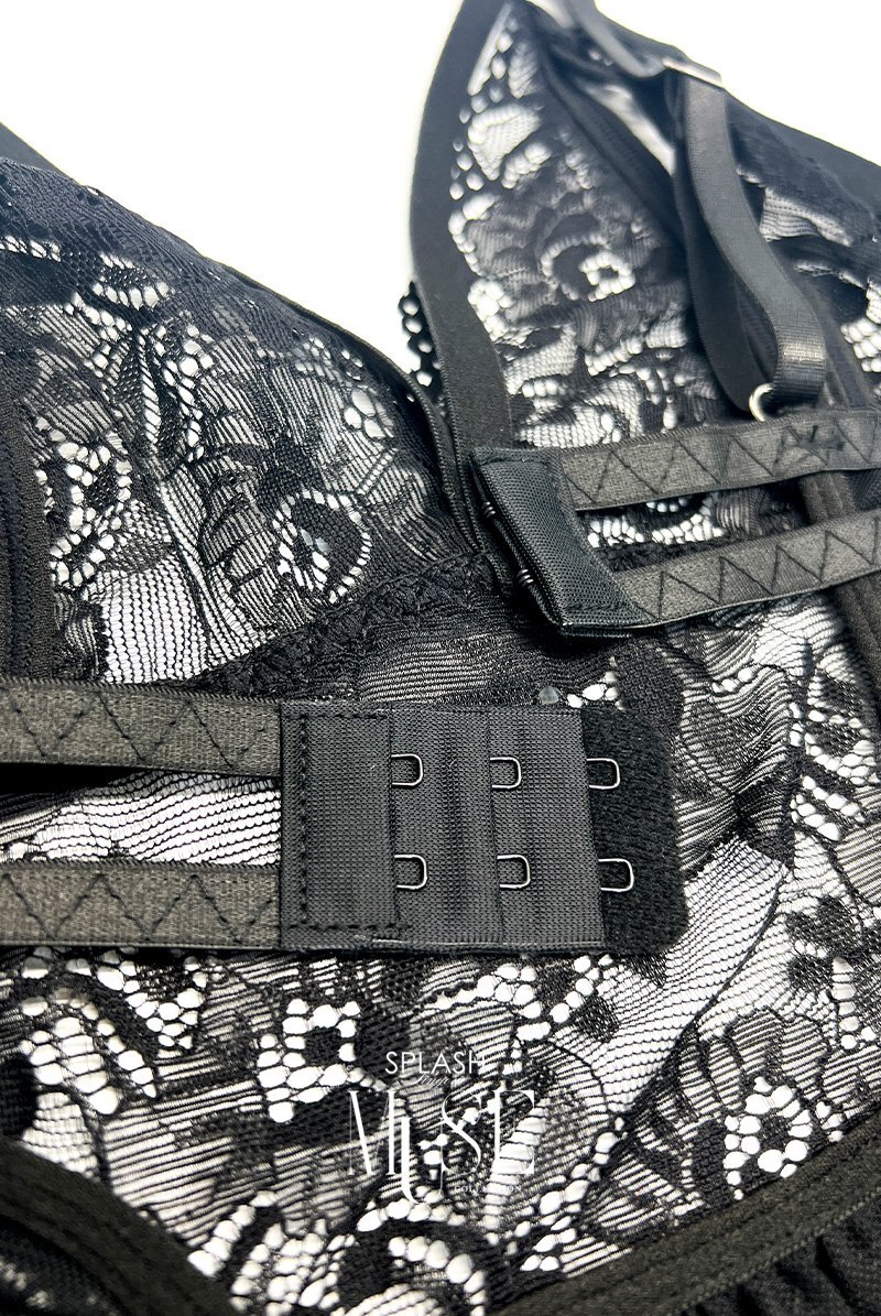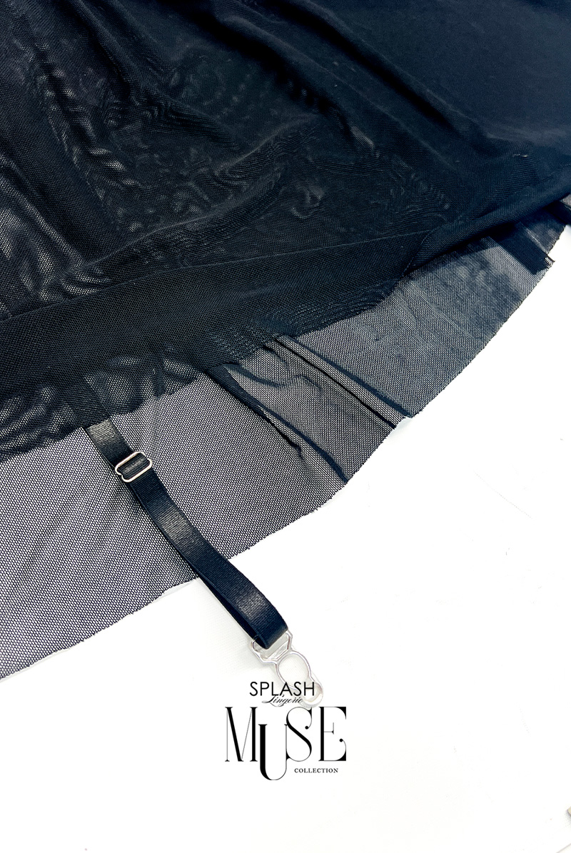 バスト部分には大胆なスリットを施し、レース越しに覗く曲線が見る者の視線を奪うデザイン。まるで胸元にひそむ野生がゆっくりと目を覚ますような、危うくも美しい存在感を放ちます。柔らかなレースとシアー素材で構成されたボディは、光を受けてほのかに透け、清らかな女性らしさを際立たせながらも、内側に眠る官能をそっと匂わせます。 さらに、取り外し可能なガーターベルトがスタイリングの幅を広げ、クラシックにも小悪魔的にも演出可能。気分に合わせて表情を変えることができ、まさに“ころころと魅力を変える小悪魔”そのもの。ふわりと揺れるスカートラインは可憐さを、黒レースの陰影は妖艶さを添え、二面性を自在に操れる一着です。 清らかさを装いながら、奥底に潜む強い官能を秘めた「Diana」。纏う人の内側にある本能的な美をそっと呼び覚ます、忘れられないランジェリーです。