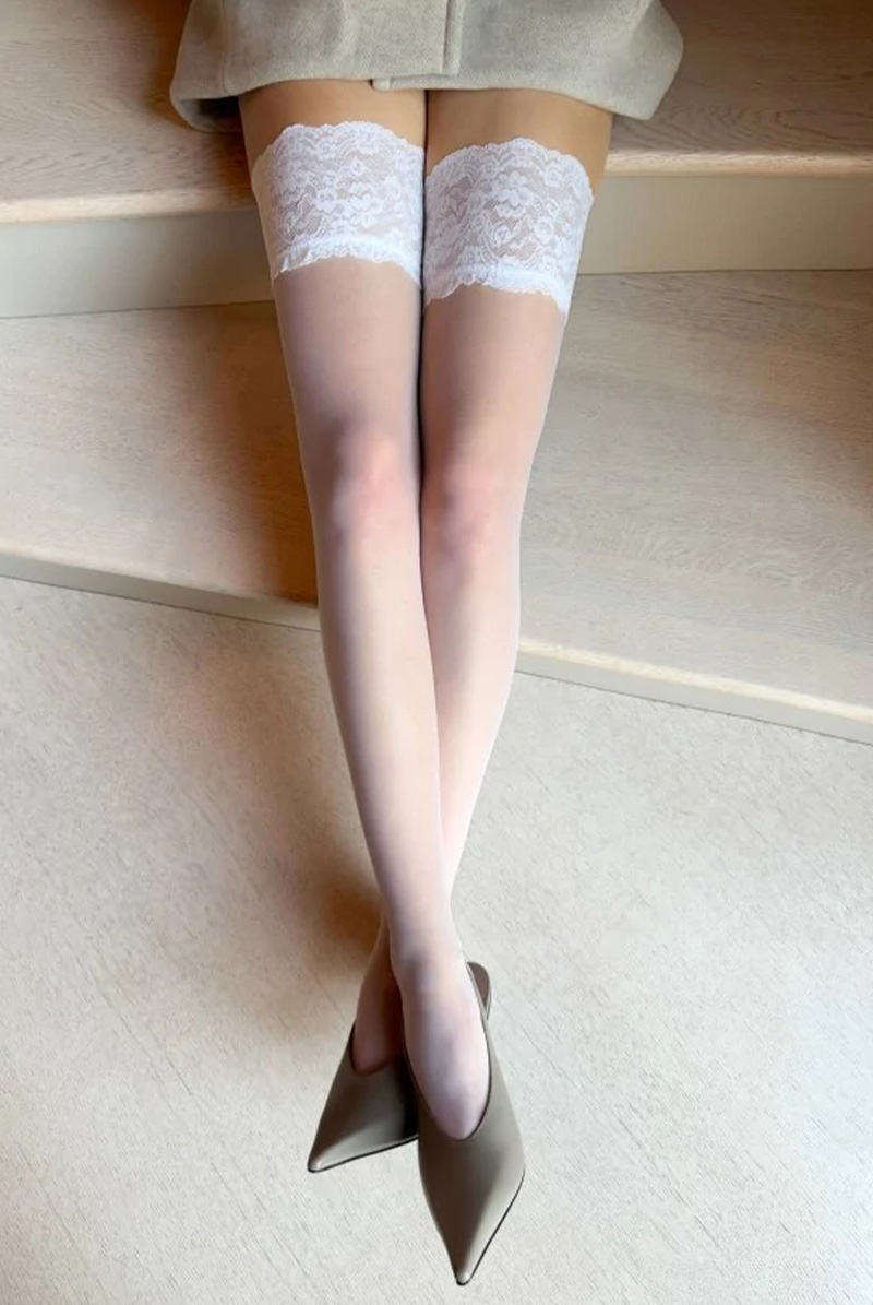 レース内側にシリコンストッパーが付いたガーターストッキング。 ブラック・ナチュラル・ホワイトの3色から選べるストッキングは、季節ごとやシーンごとに使い分けてもOK。 太もも部分にあしらわれたレースがシンプルなデザインにエレガントさをプラスします。 合わせやすいデザインのガーターストッキングはパーティのドレスアップやデートスタイルにもおすすめ。 気分に合わせたカラーでコーデを楽しんでみてはいかがでしょうか? (長時間の着用にはガーターベルトとの併用をお勧めします。)