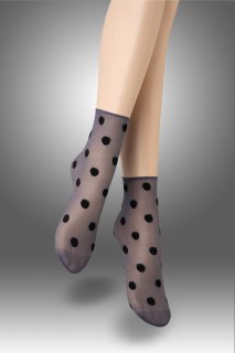 商品詳細[z0039] ショートストッキング(ドット柄・グレー×ブラック)[KYLIE Socks argento]