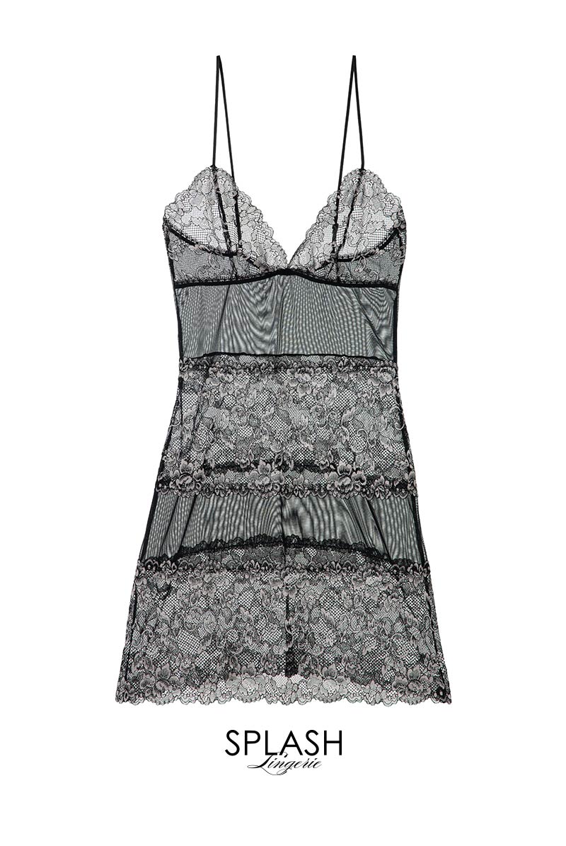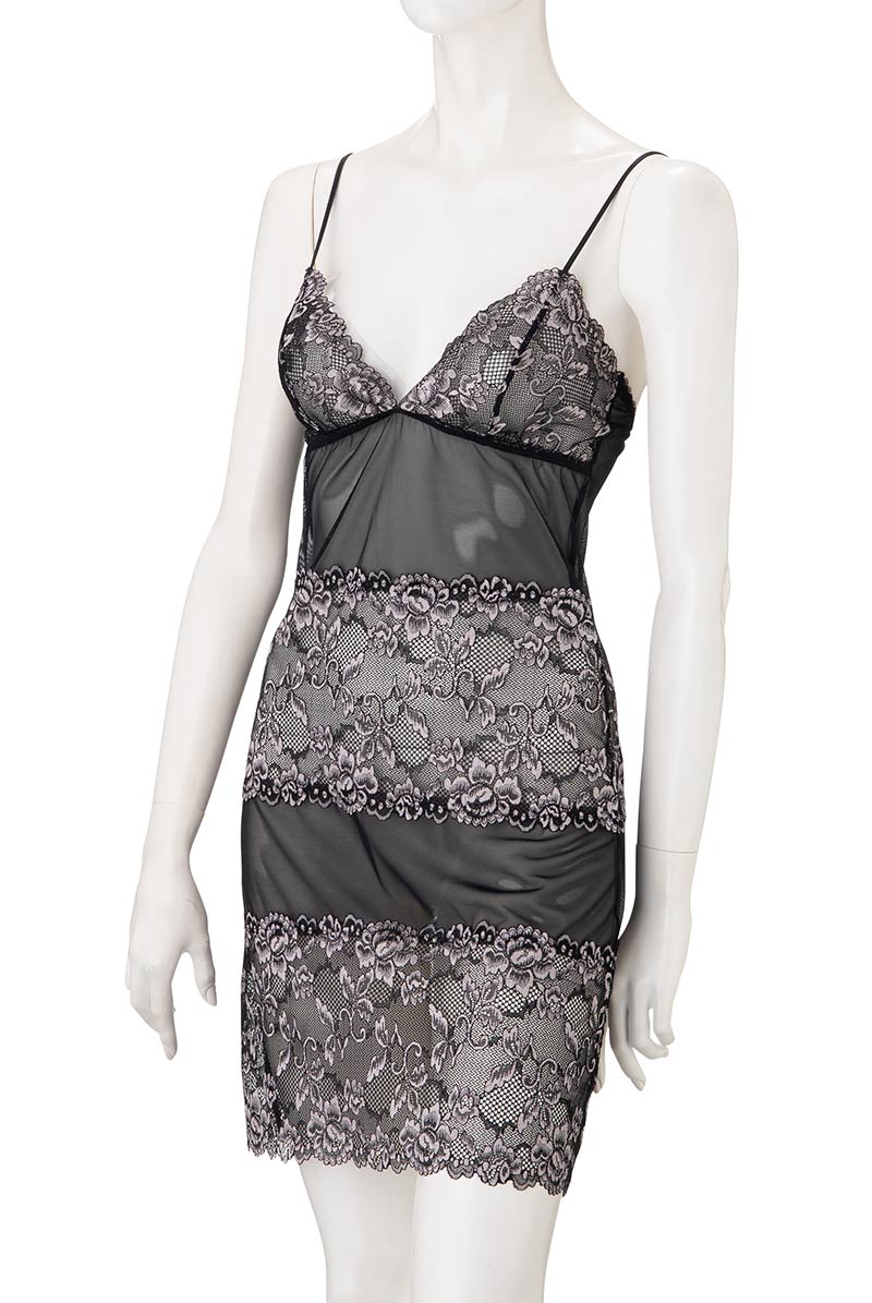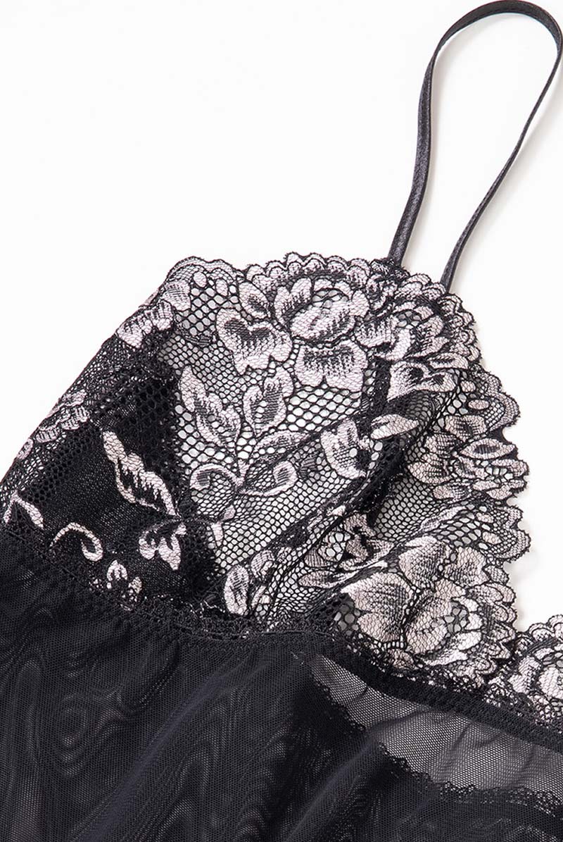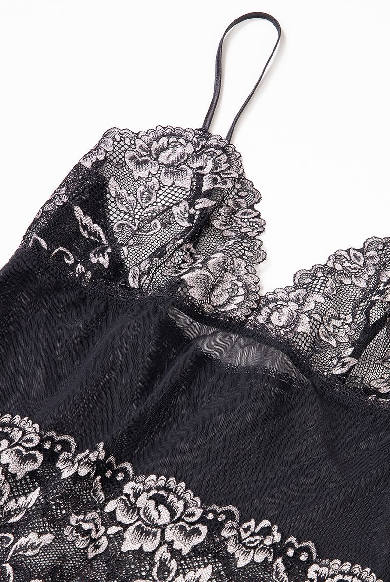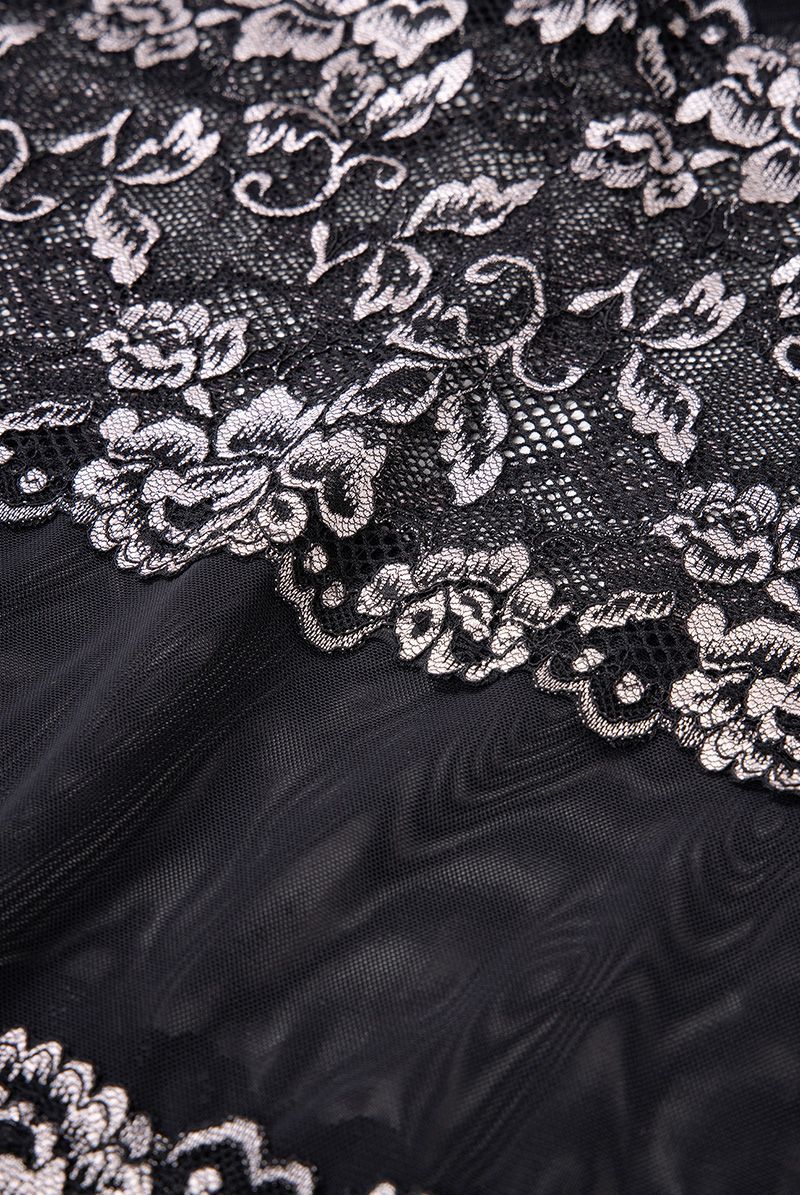 ブラック×シルバーピンクのフローラルレースが妖美に輝くベビードール。クラシックなスタイルに官能のスパイスを加えモダンに昇華させたSawrenならではのデザインが魅力です。特別な夜をミステリアスに彩るランジェリーを大切な人とお楽しみください。 シアーなチュールレースとフローラルレースを交互に配したスタイリッシュなベビードールは、賢い肌見せもかなえる計算されたデザイン。異なる透け感のレースが身体のラインをさらに艶めかしくトレースします。エレガンスは失わず、シャープ&セクシーに着こなせる大人仕様のブラックランジェリーは必見です。ショーツは別売りです。