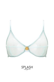 シアーなチュールレースで仕立てた繊細な表情のノンワイヤーブラジャー。イエローグリーンとホワイトの清涼感あふれるカラーリングが女性の無邪気な魅力を引き立てます。ピンナップガールのようなコケティッシュさとモードな表情をあわせ持つ洗練されたデザインは必見です。 まるでヌードのような軽いフィッティングも魅力。華奢なルックスに反して程よいメイク力があるので、リラックスタイム用としてだけでなくデイリーに活躍させるのがおすすめです。オートクチュール感覚で纏える、心まで解放してくれるようなブラジャーをぜひお楽しみください。※ブラジャーのカップは肌が透けます。透ける素肌の美しさをお楽しみください。