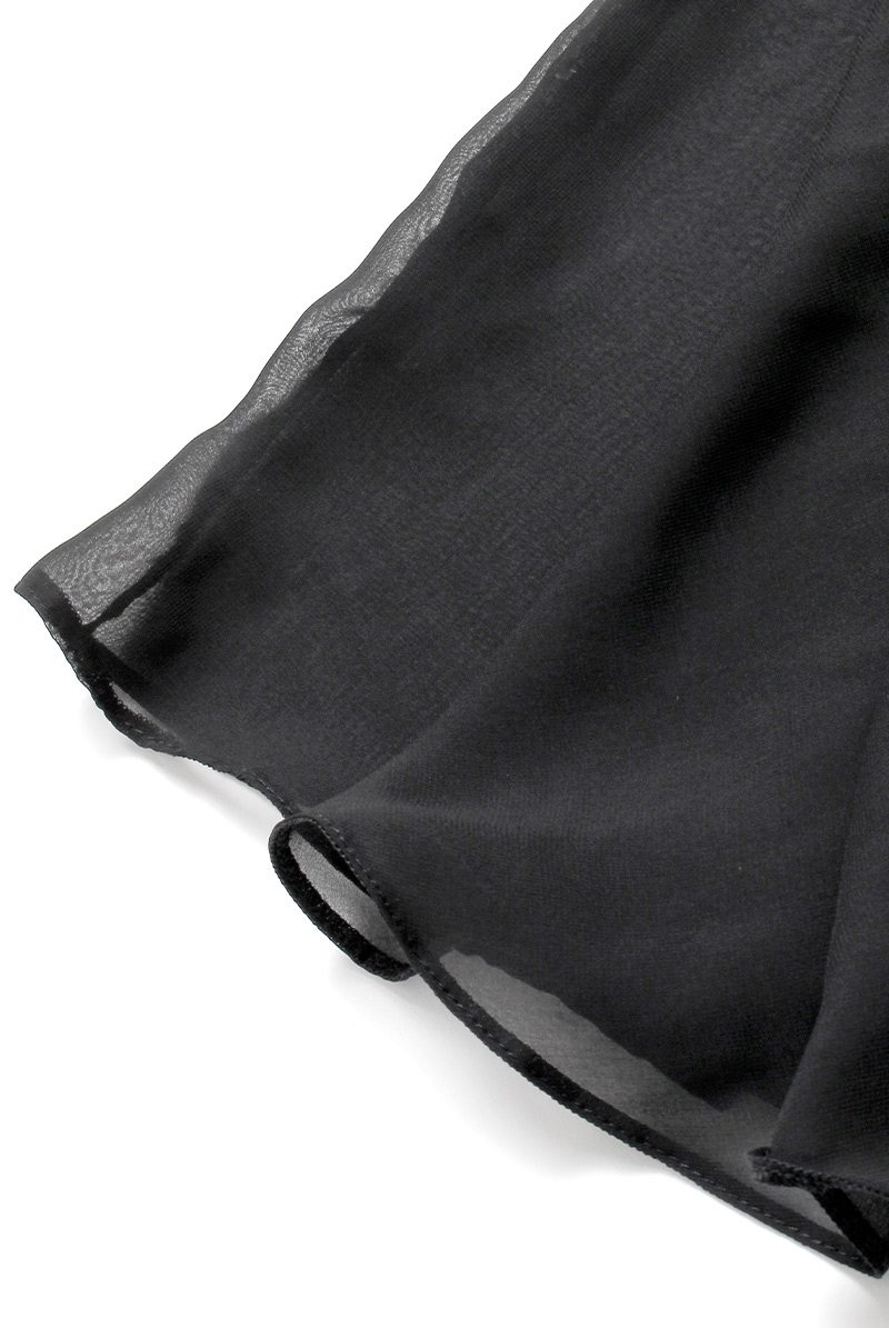 透明度の高いフローラルレースがデコルテを華麗に装飾するベビードール。甘く隙のあるデザインとスタイリッシュさを両立した大人仕様のアイテムは必見です。刺繍が光を受けて繊細に輝くリュクスなブラックランジェリーが大切な人と過ごすひとときを彩ります。 ブラ部分は立体的に設計されており、ヌードにさらりと纏うだけできれいなラインに。バスト下からはチュールレースが広がり動きに合わせて無邪気に揺らめきます。甘口なフロントに対しバックはシンプルに仕上げバランスも◎。シアーなレースに加えて艶めくストラップの質感もお楽しみください。
