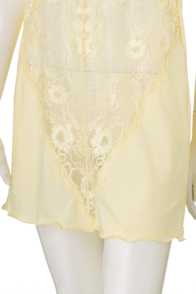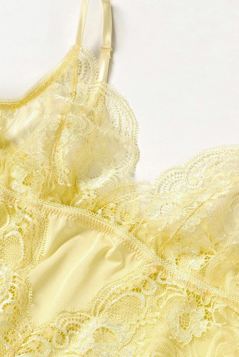 上品なクリームイエローが表情まで明るく輝かせるベビードール。2種類のフローラル柄を重ねたような奥行きのあるレースが身体を透かしシンプルなスタイルにリュクスなエッセンスをプラスします。大人の女性の自然体なセクシーをかなえるインポートならではのデザインをお楽しみください。 レースの美しさを堪能できるベビードールはV字を描くスタイリッシュなデザインも魅力。裾の広がりも抑えたエレガントなアイテムがデートにはもちろんワンピやスカートのインナーとしても活躍します。程よい甘さのセクシーランジェリーは大人の必需品です。