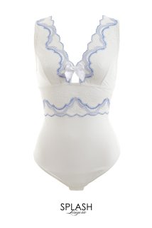 純白と澄んだブルーでボディをフレッシュ&セクシーに彩るショーツ。繊細なフローラル柄にリズミカルに波打つラインを乗せたユニークなレースが唯一無二のルックスを演出します。サイドにもレースを配したインポートならではのリュクスなスタイルをお楽しみください。 バックもシアーなレースをたっぷりと使いセンシャルに。曲線を描くブルーのラインがヒップを縁取り印象的な後ろ姿を演出します。清楚な美しさにひとさじの色香を忍ばせたホワイトランジェリーはオフィスからデート、ブライダルまであらゆるシーンにマッチする必需品です。