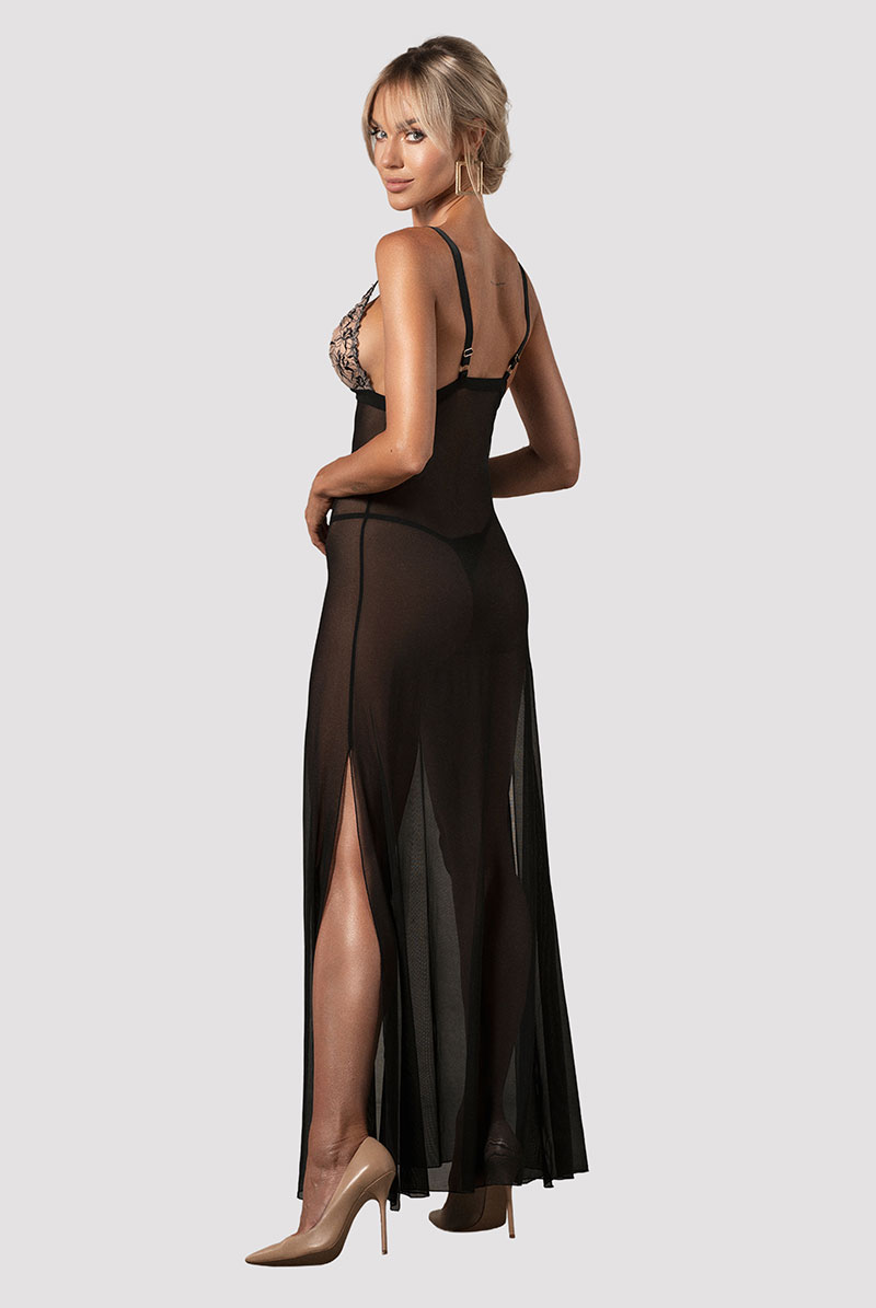 - > 【10%OFF】Vila-Blanes-chemise |スリップドレス&タンガ(ワイヤーなし・シースルー・ボタニカル刺繍・ブラック×ベージュ) | Exquisite 高級ランジェリー【即日発送・サイズ交換NG】※輸入下着・ランジェリー